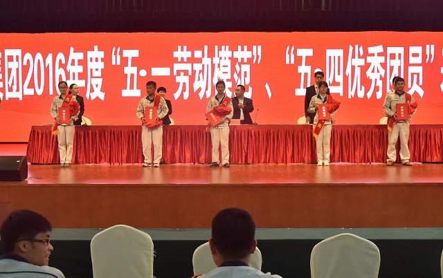 5月4日,公司2016年度“五·一勞動模范”、“五·四優秀團員”表彰大會在羅欣會堂隆重召開,集團部分領導出席了大會并為受表彰人員頒獎。