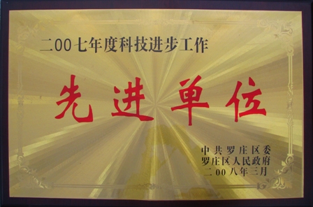 公司被評(píng)為區(qū)科技進(jìn)步工作先進(jìn)單位(2008-3-17)