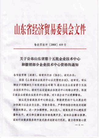 2008年9月11日,山東羅欣藥業股份有限公司企業技術中心被山東省經濟貿易委員會認定為省級企業技術中心。省級企業技術中心的認定,將進一步推動企業技術進步和技術創新,加快科技成果轉化,順利實現產業化。企業技術中心以“立足企業,面向全國”為宗旨,著力培育核心技術,強化自主創新,高層次、高起點地抓好技術中心建設,為企業生產技術改造,產品升級換代以及引進、消化、吸收國外先進技術提供技術支撐;為形成擁有著名品牌和自主知識產權、提升企業國際市場競爭力奠定基礎。
