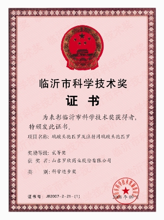 羅欣藥業始終堅持“科技興企”的戰略方針,加大科研投入,不斷推出高科技含量、高質量、高附加值的“三高”產品。2008年9月,公司研發的產品硫酸頭孢匹羅及注射用硫酸頭孢匹羅、頭孢硫瞇及注射用頭孢硫瞇的新技術獲得臨沂市科學技術進步獎二等獎,頭孢孟多酯鈉及注射用頭孢孟多酯鈉、頭孢克肟的新技術獲得臨沂市科學技術進步獎三等獎。
